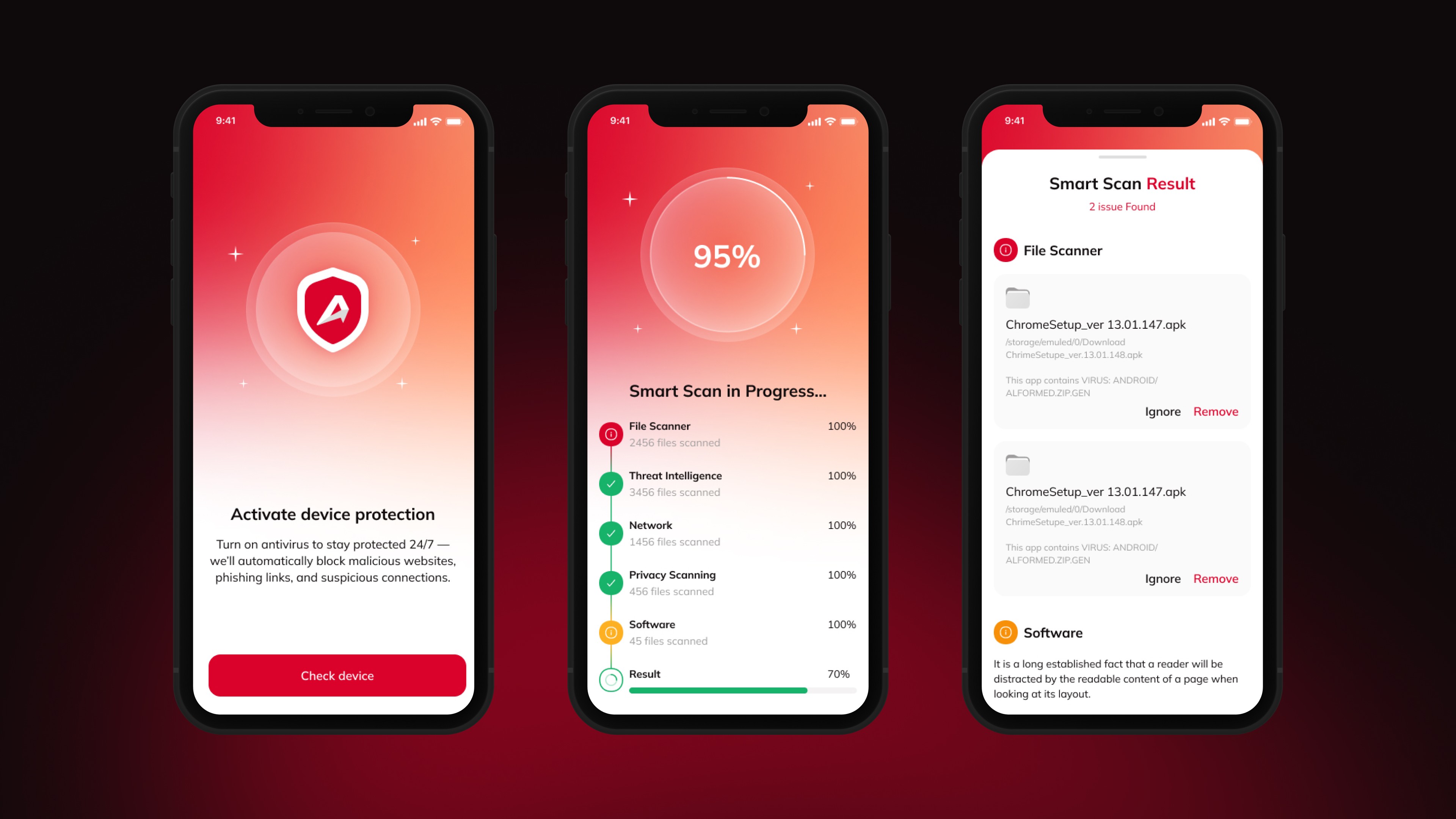 The UI/UX for both mobile apps (AdBlock & Antivirus)